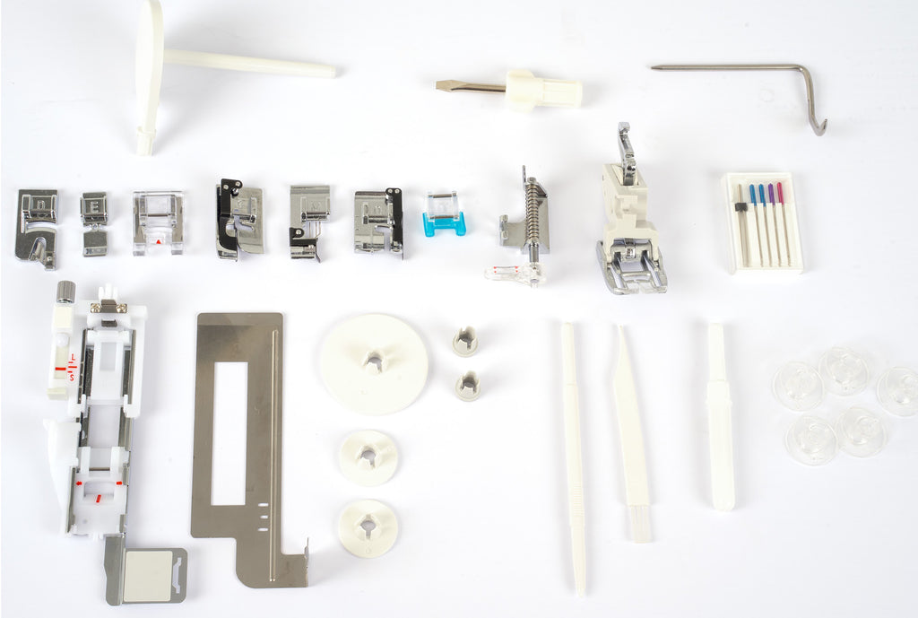 Repensée pour les passionnées de couture, la élégante Skyline S6 Édition Anniversaire de Janome, équipée du système d'alimentation en tissu AcuFeed Flex, du pied à double entraînement et de la tension automatique du fil, offre un entraînement et un contrôle inégalés. Parfaite pour les projets de quilting épais multicouches et de décoration intérieure. Grâce aux deux plaques à aiguille incluses et aux 91 positions d'aiguille, le positionnement et la précision des points sont à votre portée.