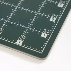This self-healing, multi-layer mat is usable on both sides with a light background on one side, and a dark background on the other. These different colored backgrounds make it easy to get the highest contrast and the most visual acuity when cutting your fabrics- use the lighter side to cut dark fabrics and the dark side to cut lighter fabrics.